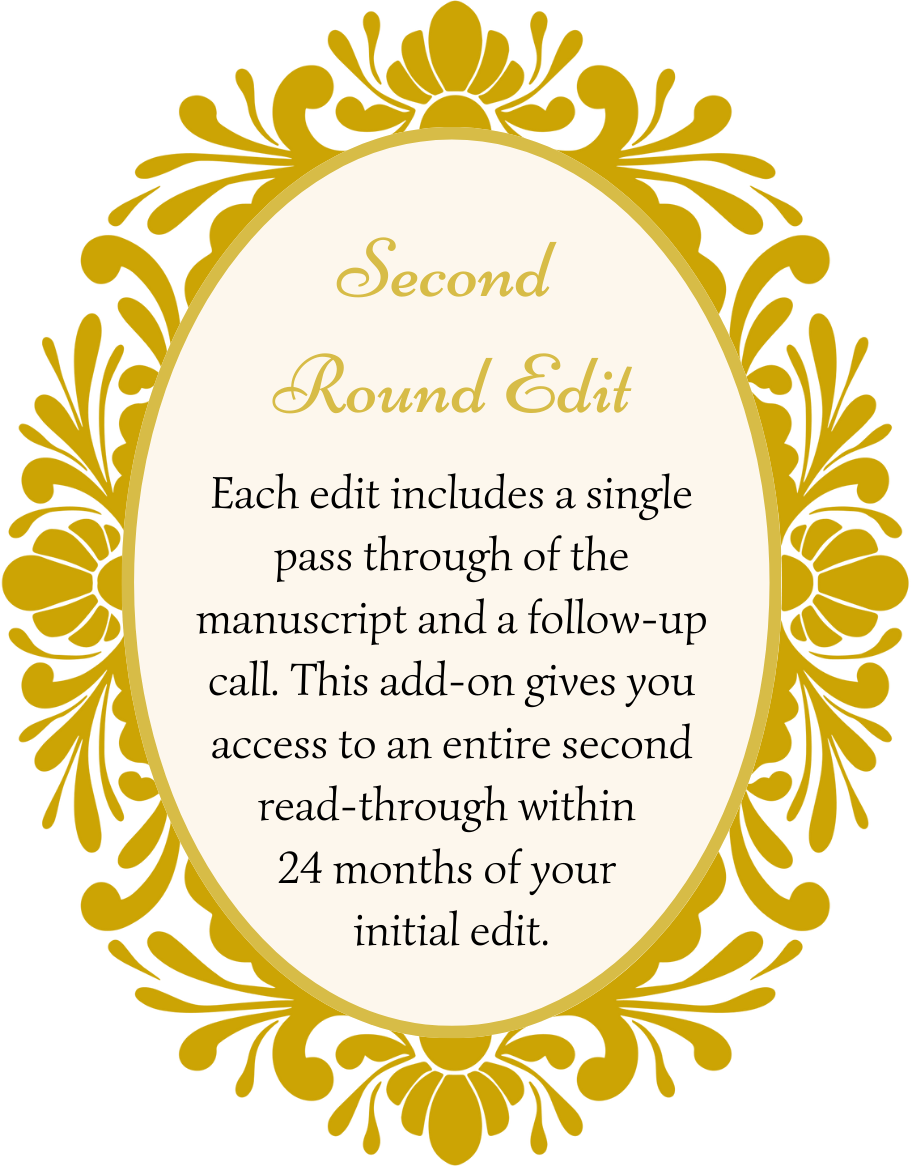 Along with the feedback, I will provide a quote for both a Manuscript Evaluation and Developmental Edit. This quote will be good for 12 months should you need time to decide whether to move forward.